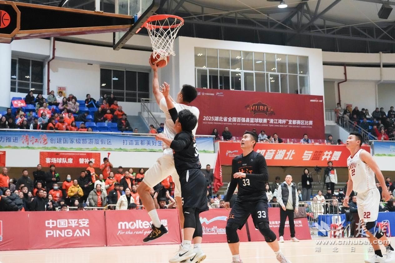 荆楚网(湖北日报网)讯(记者宋劲松 通讯员邓洁、袁琳) 12月13日晚,宜都市体育馆内气氛炽热。随着终场哨声长鸣,历时近四个月的2025湖北省全国百强县篮球联赛,在主场球迷的欢呼声中迎来终章。在备受瞩目的第十四轮收官之战中,坐镇主场的宜都队与来访的“兄弟”枝江队联袂奉献了一场经典对决。双方鏖战至加时赛,最终宜都队以74:71力克强敌,用一场激动人心的胜利,为家乡的主场赛季画上了圆满句号。