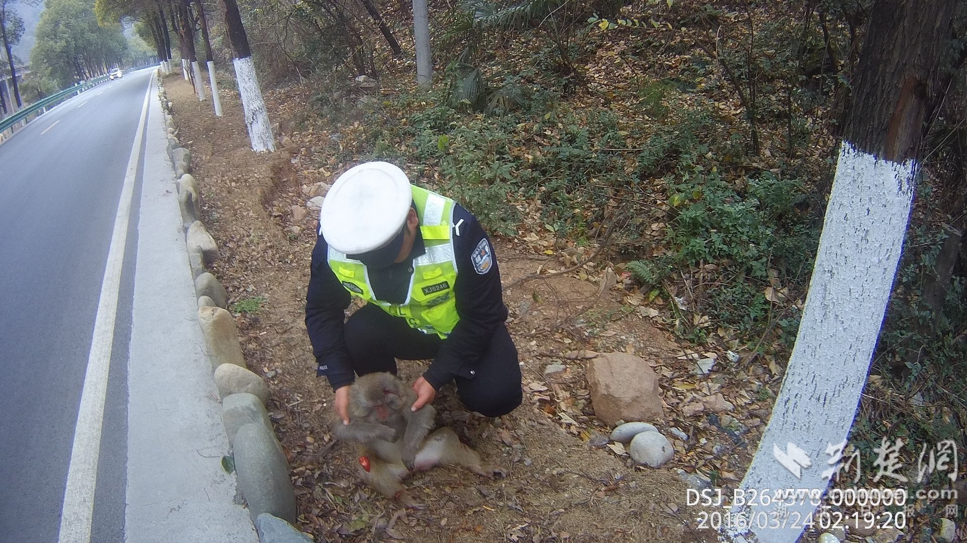 荆楚网(湖北日报网)讯(通讯员 周贝贝)2月3日,在宜兴线黄花镇新坪村路段,一只腿部受伤、行动困难的野生猕猴被村民发现。警民携手迅速响应,成功帮助这只国家二级保护动物脱离险境。