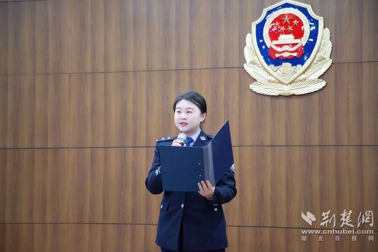 荆楚网讯( 通讯员吴昊)3月25日下午,一场庄重而感人的“警号重启”仪式在宜都市公安局举行。当阳市公安局因公牺牲民警付晓华的警号“061193”时隔4年后重新启用,佩戴在他的女儿——新警付丹琳胸前。这枚承载着两代公安人使命与荣光的警号,在庄严的仪式中完成了跨越生死的传承。