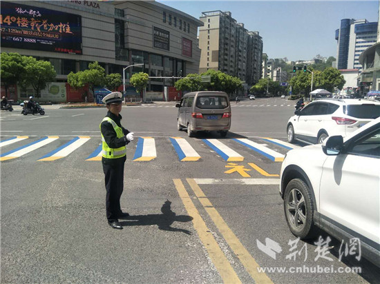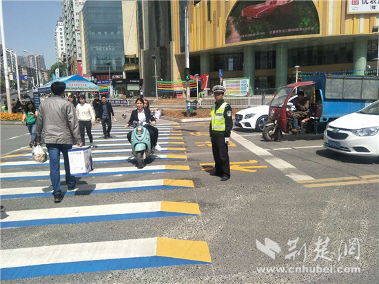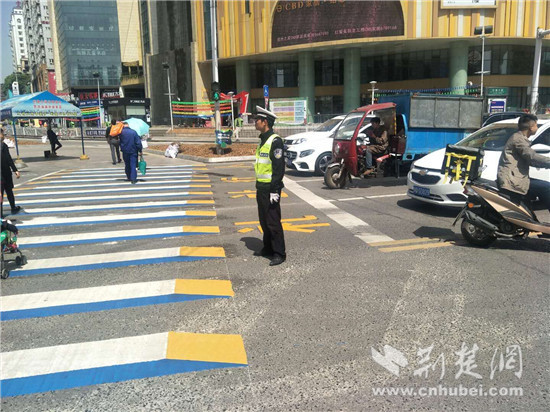 宜昌城区水悦城路口3D立体斑马线。宜昌市交警支队 供图