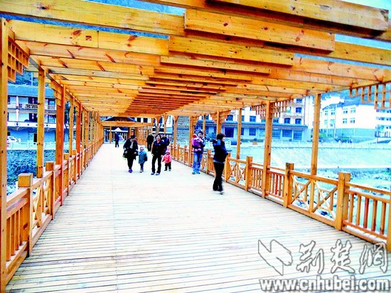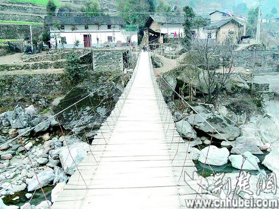 图为:省政协组织企业家和宗教界委员向武陵山试验区内的神农架林区下谷坪土家族乡捐赠50万元,支持该乡修建风雨桥,解决群众过河难的问题。上图为旧桥,下图为新桥。(本报视界网 晓向 摄)