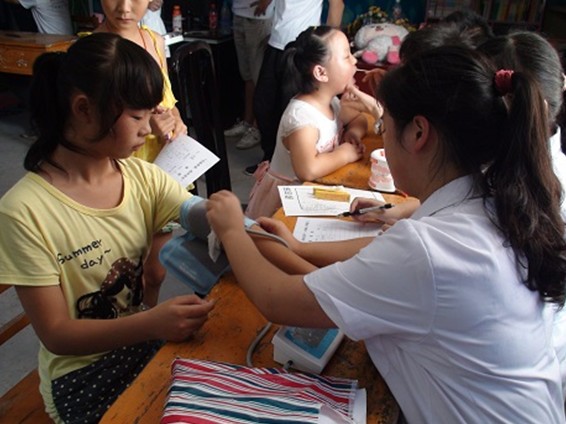 7月13日下午,由武汉大学、湖北医药学院、湖北汽车工业学院三所学校的志愿者组成的“守候希望 相伴成长”暑期社会实践团队为柏林小学留守儿童进行了爱心体检。