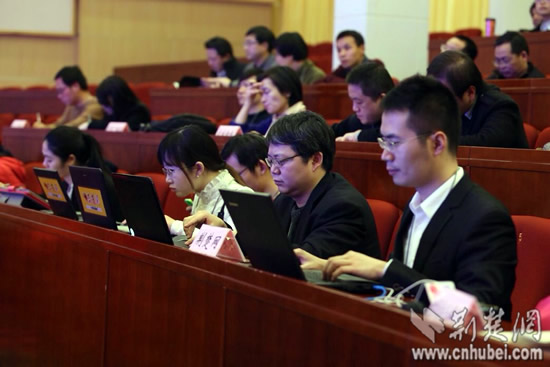 荆楚网现场微博直播新闻发布会(荆楚网记者 张扬 摄)