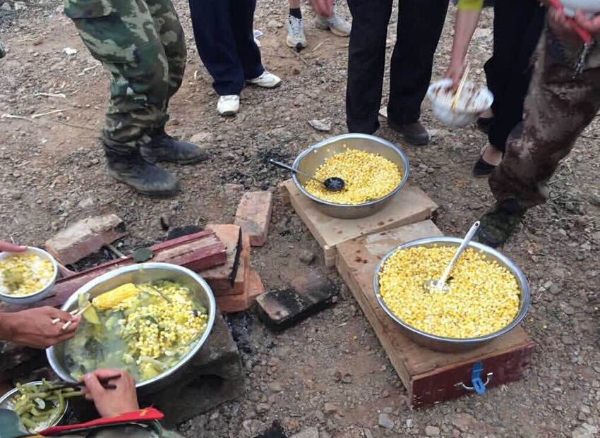 与救灾官兵一起吃简单的苞谷饭(8月7日)