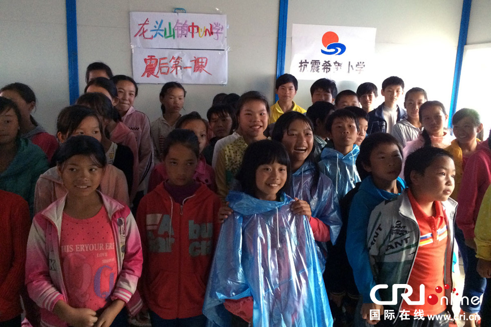 鲁甸地震“震后第一课”在龙头山镇中心小学的板房教室里正式开讲。肖中仁 摄