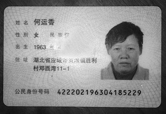 图为:身份证照是小屋里唯一能找到的何运香的照片。