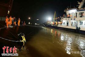 浑浊的江面暗流涌动,凉风嗖嗖,事发水域十余艘海事船灯火通明。解放军和武警部队救援官兵、公安、海事、航务等救援力量的作业正在紧张进行——救援船里的临时会议室里,总参谋长助理马宜明中将正在组织各救援力量负责人研究抢救方案;广州军区和海军近200名蛙人通过高铁、空运等方式紧急赶到大马洲水道,海军的救援人员正在进行潜水搜救;由武汉总医院周赤龙院长带领的医疗小分队在救援船甲板展开急救装备,随时准备领受任务;交通部杨传堂部长正带着救助打捞专家结合“东方之星”设计图纸研究打捞方案;广州军区某舟桥旅100余名官兵正在救援点北侧江堤上搭设步梯,以便后续救援和遇难者遗体转运上岸。