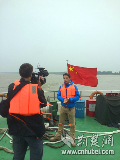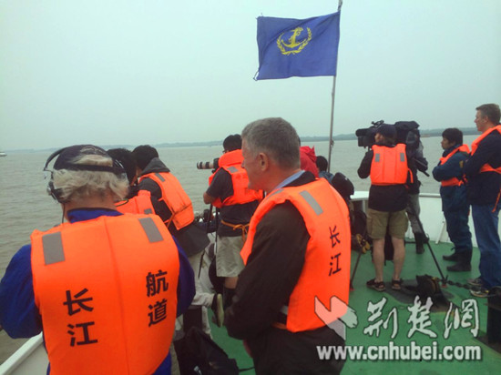 荆楚网消息(记者裴斌)6月4日下午14时左右,数十家境外媒体的记者集中乘船到达事发江面附近采访。