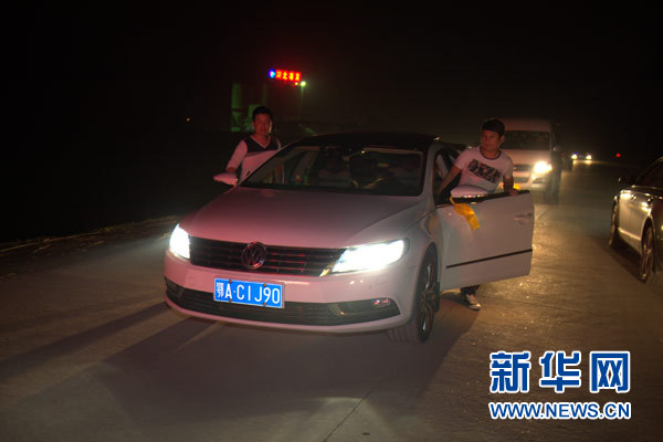 6月3日,湖北监利一辆私家车车身上悬挂着黄丝带。新华社记者 李响 摄