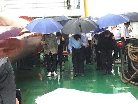 3日上午,李克强总理再次来到客船翻沉事件救援现场。在大雨中,总理及随行人员向遇难者遗体三鞠躬并默哀。 图/中国政府网