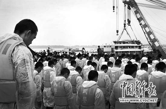 汽笛声响起的时刻,海军工程大学的潜水员官东和他的7位战友站在“东方之星”的甲板低头默哀。“东方之星”翻沉后,官东和他的数十位战友,一次次下潜到黑暗的水下,冒着生命危险救起了两位幸存者,并把多名遇难者从水下带回。