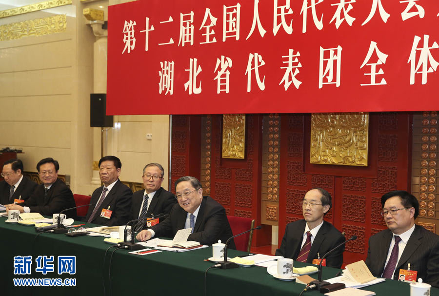 3月5日,中共中央政治局常委、全国政协主席俞正声参加十二届全国人大三次会议湖北代表团的审议。 新华社记者 庞兴雷 摄