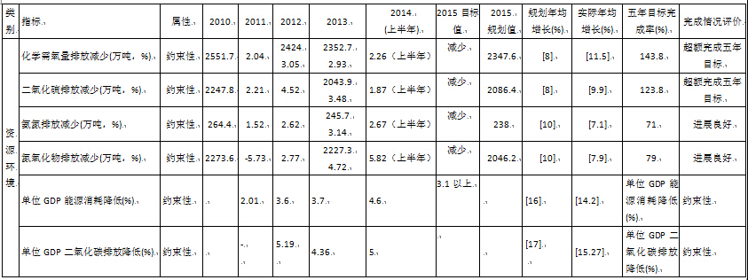 表7 国家“十二五”规划主要指标实施情况(2011-2014年)(之三)