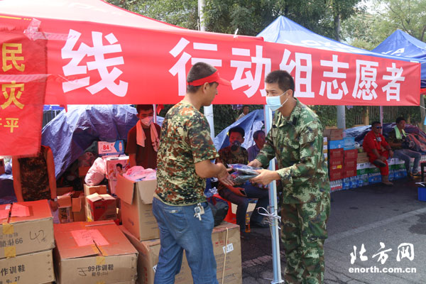 天津北方网讯: “为奋战在救援一线的官兵们提供各种所需的物资和帮助,把好质量关,亲自将物资送到官兵手上。”这是一线行动组志愿者们的“誓言”。天津港“8·12”瑞海公司危险品仓库特别重大火灾爆炸事故发生以后,8月13日,大量志愿者涌入滨海新区服务。一线行动组志愿者们也和救援官兵同在“一线”。