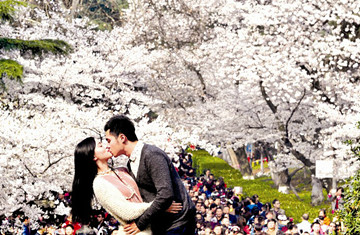 浙江情侣在武大樱花树下甜蜜一吻