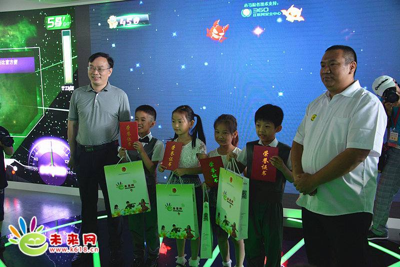 6月7日在青少年科普基地裴志勇、万兴亚为小小安全卫士颁发荣誉证书 未来网记者 巩帅/摄