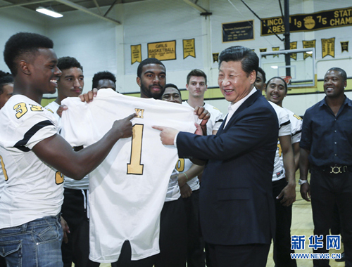 9月23日,国家主席习近平参观美国塔科马市林肯中学。 新华社记者兰红光摄