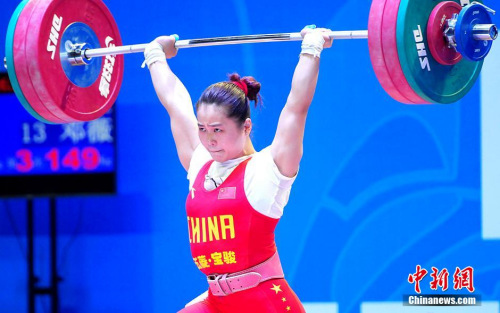 资料图:邓薇在63公斤级比赛中。中新社记者 张斌 摄