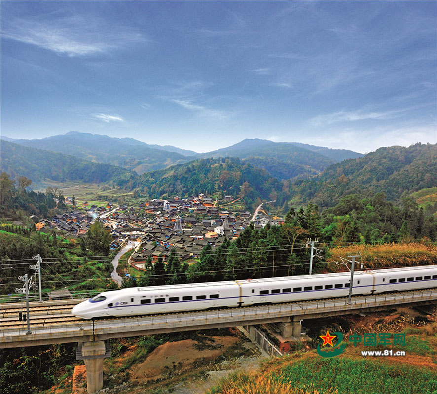 贵广高铁穿过侗寨。贵州省交通运输厅供图