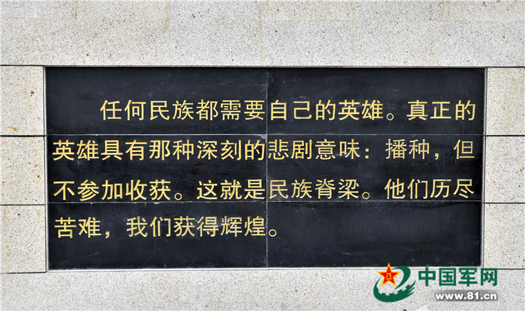 金一南在《苦难辉煌》中指出:“任何民族都需要自己的英雄。真正的英雄具有那种深刻的悲剧意味:播种,但不参加收获。”“这就是民族脊梁。他们历尽困难,我们获得辉煌。”