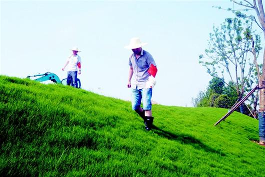在青山建五江边,记者看到,尽管巡堤员头戴草帽,但在无遮挡的烈日烘烤下,仍然满头大汗。在新沟桥防汛分指挥部里,当班的青山科协主席陈贵斌正在记录堤防情况。他告诉记者,为了防止巡堤员中暑,每次半小时巡查前,都要求他们喝大量水,并带防暑药。