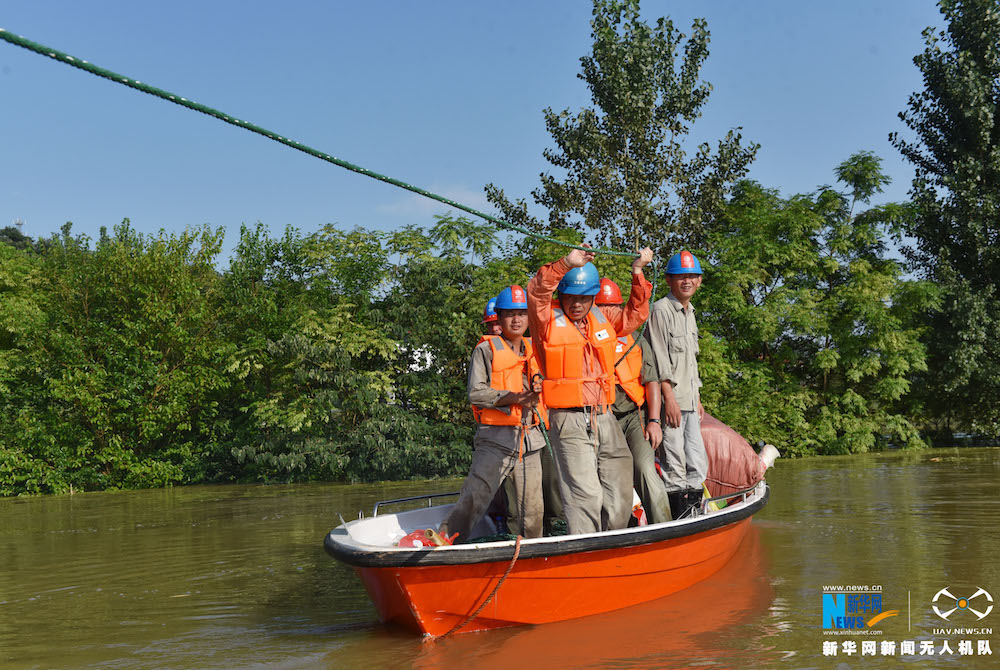 图为7月7日,浠水电力工人在抢修电力设施。新华社记者 余国庆摄
