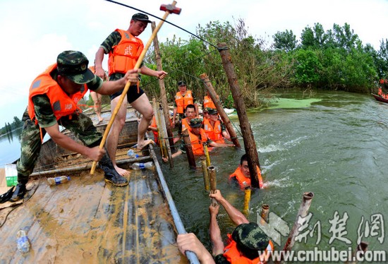 荆楚网消息(通讯员 丁海 张志伟 何智利 郭峰 马威)7月17日7时许,省武警总队黄冈市支队160名官兵在陈建林支队长的带领下,紧急奔赴黄冈团风县长河五号二级港成家咀村上抱湖堤段,上午8时到达现场并立即展开对决口的封堵。