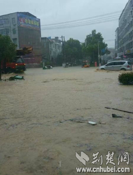 本次大暴雨致使通城11个乡镇普遍受灾,县城城区受淹严重,最大水深超过2米,平均水深1米以上,城区内大量房屋、商铺、车辆受淹。隽水镇的阔田,沙堆镇的坪坳、堆山等村农作物全部被淹。