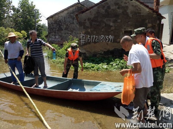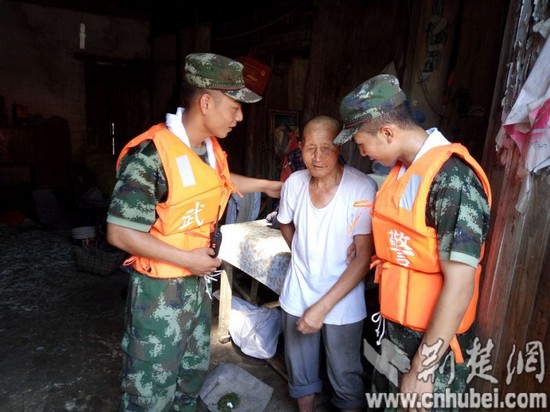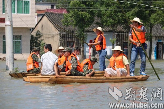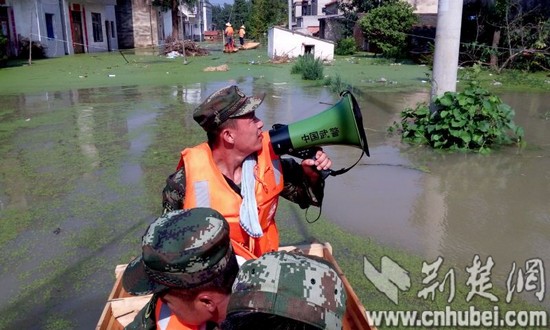 荆楚网消息(记者吴坚 徐芳 通讯员梁红波 索瑞君)7月22日,受汉北河洪水和老观湖决堤影响,湖北省孝感市垌冢镇下辖的13个自然村、1个乡镇,近5000余人需紧急转移。武警8653部队闻汛而动,出动617名兵力,协助群众撤离洪泛区。据该团团长刘志国介绍,全团官兵分成14个搜救组,协助地方政府对需要转移的村落进行拉网式排查搜救,确保搜救不漏一人。