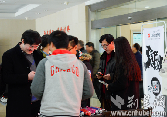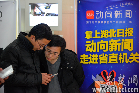 午休时间,活动现场的人越围越多。“免费看湖北日报啊,好!”、“定制频道蛮有特色嘛”、“扫这个就可以了吗”、“内容多,很方便”……机关一楼大厅顿时热闹了起来,不少机关干部利用吃饭时间在手机上安装了动向新闻。