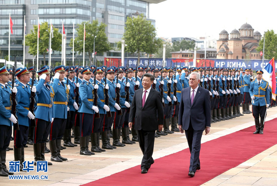 6月18日,国家主席习近平出席塞尔维亚总统尼科利奇在贝尔格莱德举行的隆重欢迎仪式。 新华社记者马占成摄