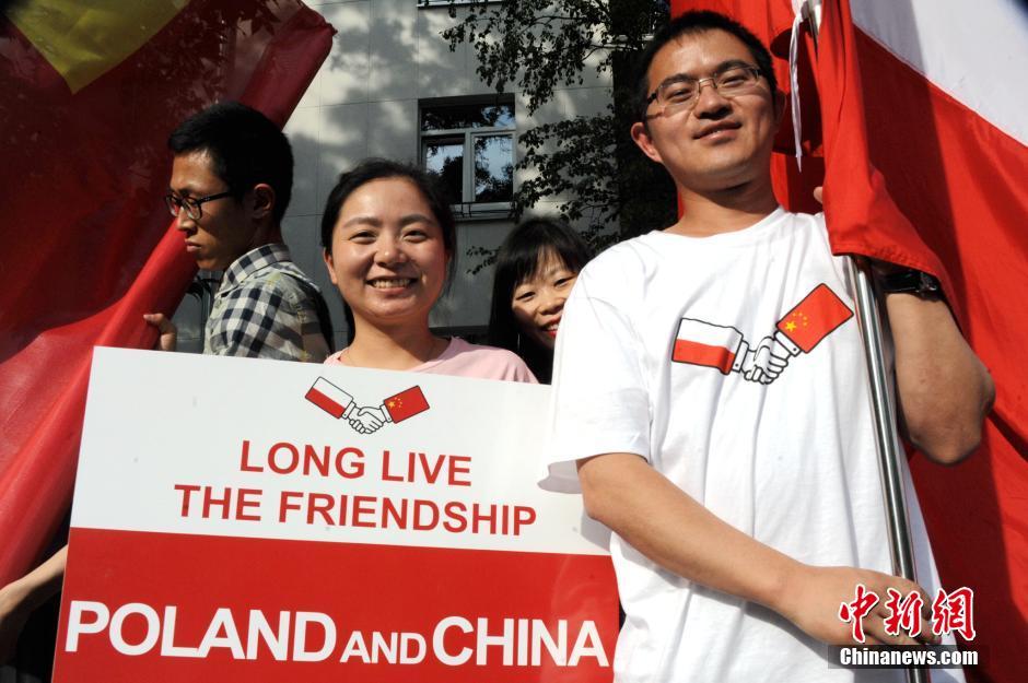 当地时间6月19日,中国国家主席习近平抵达华沙,开始对波兰共和国进行国事访问。波兰当地华人华侨、留学生和中资机构人员等组团热烈欢迎习近平到访。图为当天下午17时许,人们聚集在习近平将要下榻的酒店外迎接。 中新社记者 彭大伟 摄