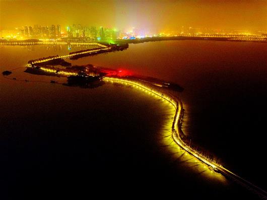 图为夜幕中的东湖绿道流光溢彩。(资料图片 记者 梅涛 摄)