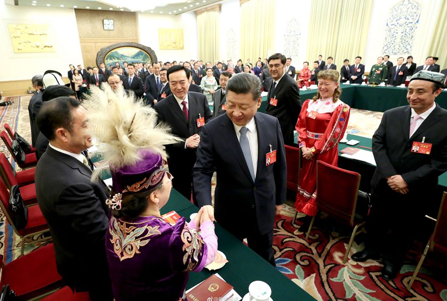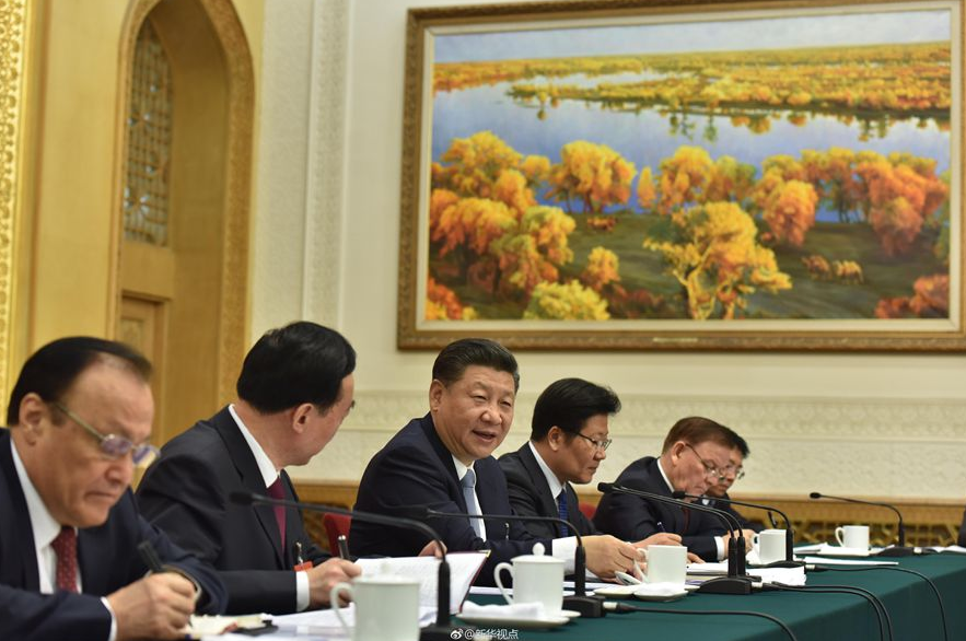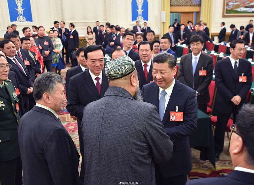 新华网北京3月10日电 3月10日上午,中共中央总书记、国家主席、中央军委主席习近平来到十二届全国人大五次会议新疆代表团参加审议。