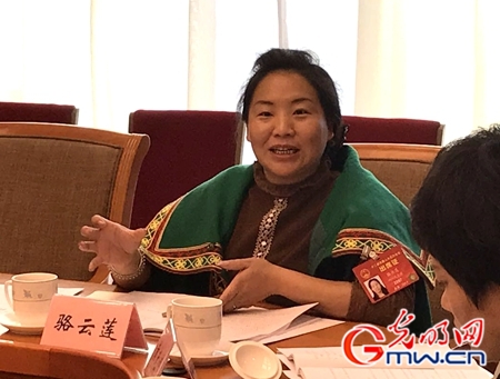 四川代表团小组讨论会上,“悬崖村”女支书现场发言。