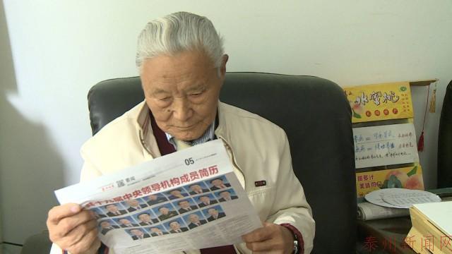 今年八十六岁的老人顾光明家住江苏泰州海陵区城南街道鑫龙社区,退休多年的他非常关心国家大事。最近,党的十九大胜利闭幕,老人家也没有闲着,认真读书看报,学习十九大精神。