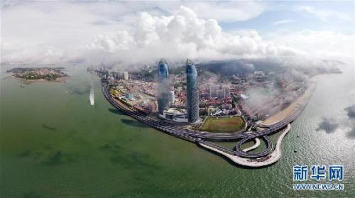 这是厦门演武大桥沿线及鼓浪屿(拼接照片,8月24日摄)。金砖国家领导人第九次会晤将于9月在厦门举行,这座海上花园城市将以靓丽的风采迎接全球嘉宾。新华社记者 姜克红 摄