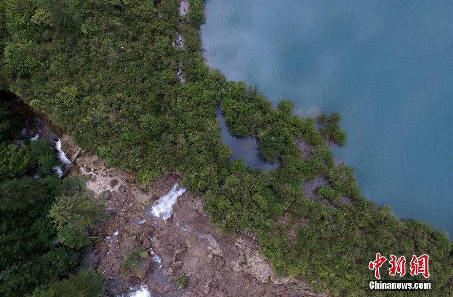 8月11日,四川九寨沟“8.8”地震后,九寨沟景区内的火花海、诺日朗瀑布、箭竹海等景点不同程度受损。其中熊猫海至箭竹海之间,因山体垮塌道路消失,给被困人员搜救带来了许多困难,加上两侧山体滑坡十分严重,救援人员只能冒险从峡谷中间地带穿过,又被称为穿越“死亡之谷”。图为诺日朗瀑布震后垮塌。 刘忠俊 摄