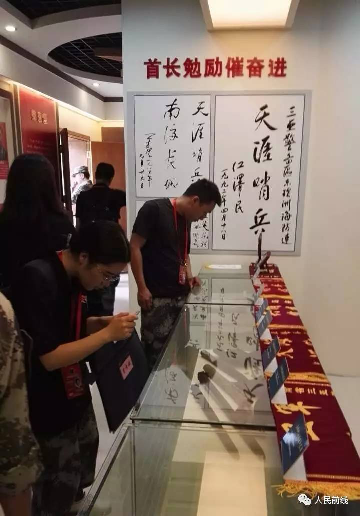 网络媒体国防行活动记者采访团在该连荣誉室参观。