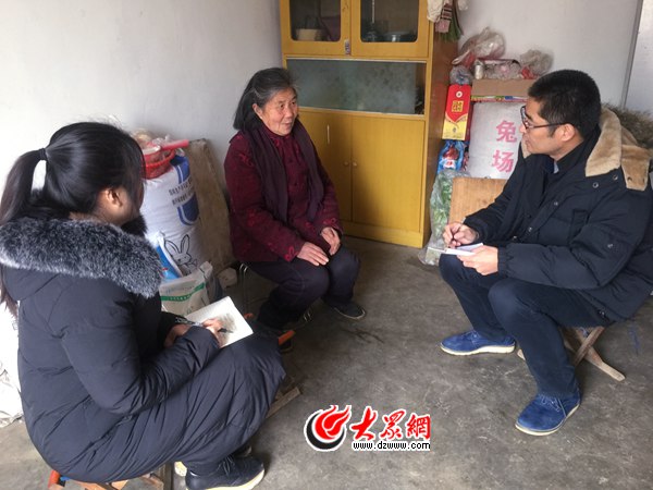 共青团山东省委挂职的第一书记王政和妻子韩梅一起来到蒙阴县旧寨乡殷家岭村徐美凤家