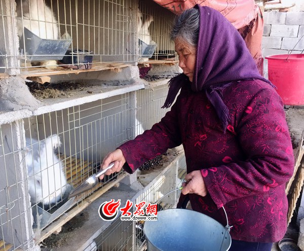 1月10日,冬日的暖阳照耀着临沂市蒙阴县旧寨乡殷家岭村的农家小院,72岁的徐美凤在兔笼前忙忙碌碌地给兔子喂食、添水。