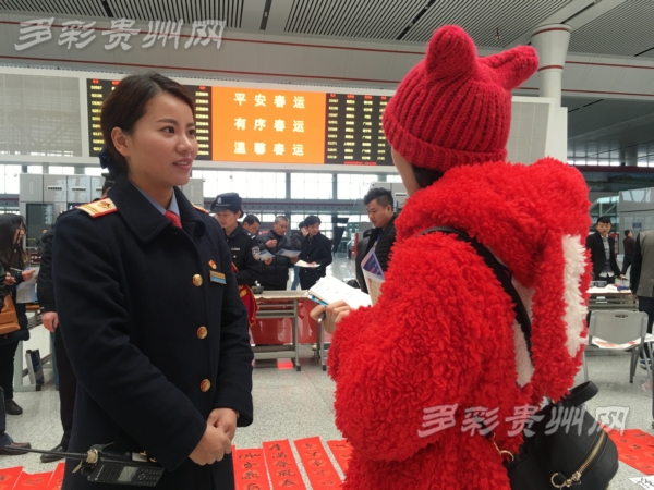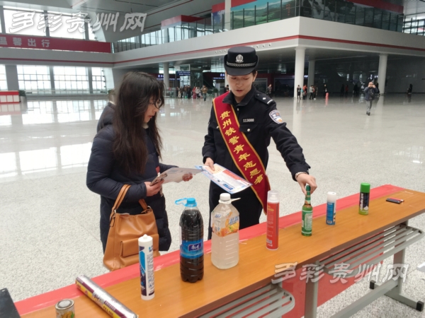 随着春运大幕开启,贵阳铁警也吹响了安保集结号。在贵阳北站候车厅内,几名警花手持安保宣传单,在放满违禁物品的红布桌旁,向过往的乘客讲解常见骗术和自我防护技巧。