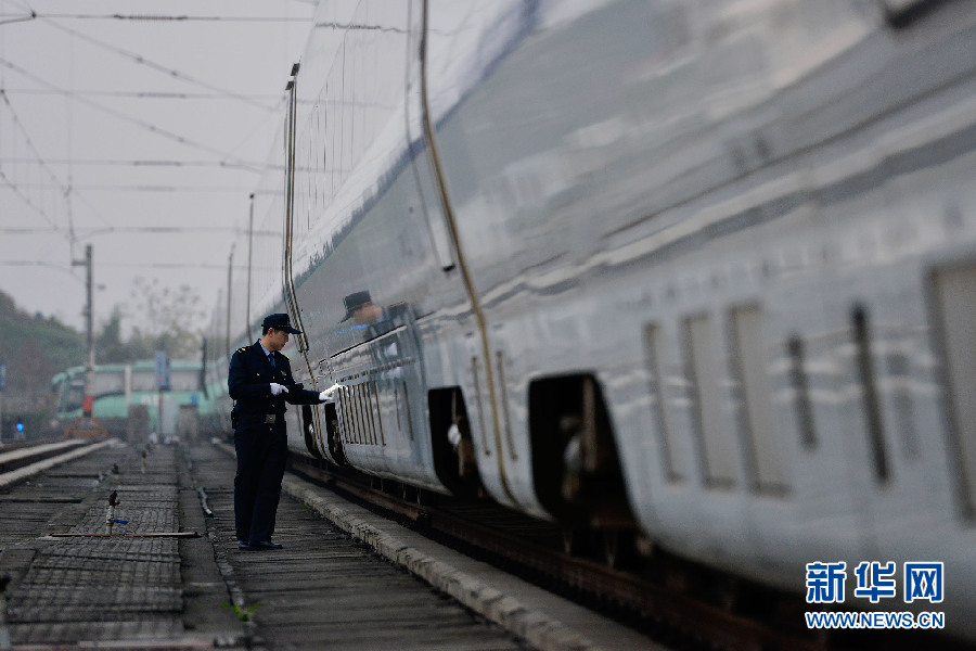 其实,除了这些在旅客看得见的地方付出的英雄之外,还有很多英雄的付出是旅客看不见的。比如重庆车辆段重庆北动车所的随车机械师。新华网 李相博 摄