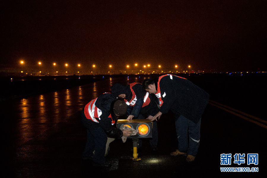 目前江北机场共有各类助航灯6139盏。春运期间,原本便已高负荷运行的江北机场,航班将更加密集,深夜里留给作业班组的时间也愈加紧张,往往只有半个小时。每天不足半个小时来保障六千余盏助航灯组成的“天路”畅通,这对检修工们而言,是个不小的考验。新华网 李相博 摄