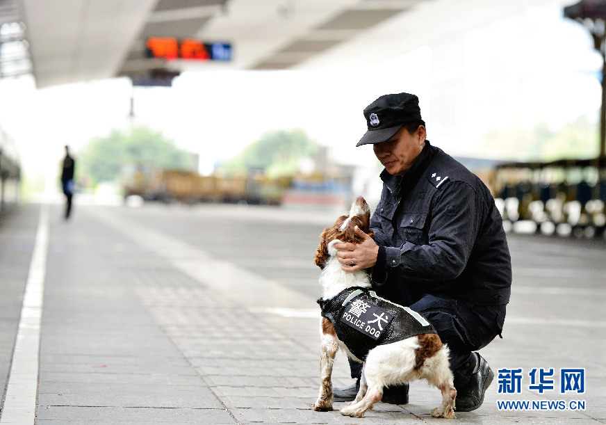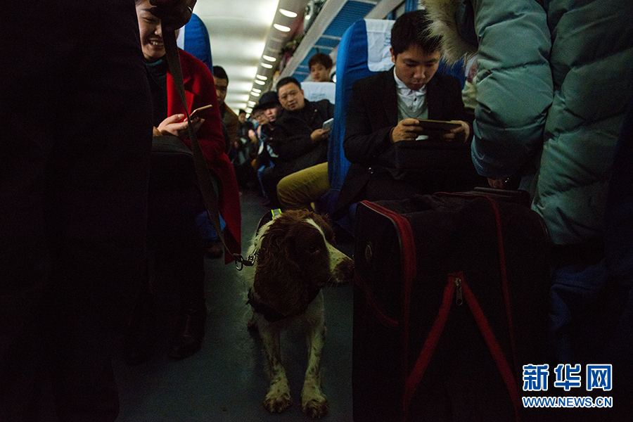 搜爆犬是一种用嗅觉寻找易燃易爆物品的警犬。春运期间,它们也在为旅客的安全贡献着自己的一份力量。新华网 李相博 摄