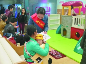 海珠客运站的儿童室内,志愿者为有需要的乘客服务。