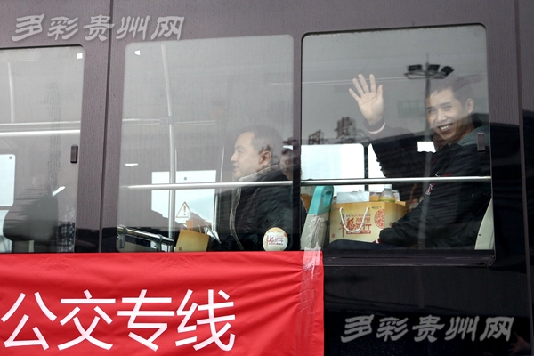 归心似箭。在车站工作人员的指引下,更多的老乡登上了早已等在站外的幸福专列公交专线,10辆公交车将发往金阳客车站、客运东站及贵阳火车站,送需要赶路的老乡继续回家的下一段旅程。