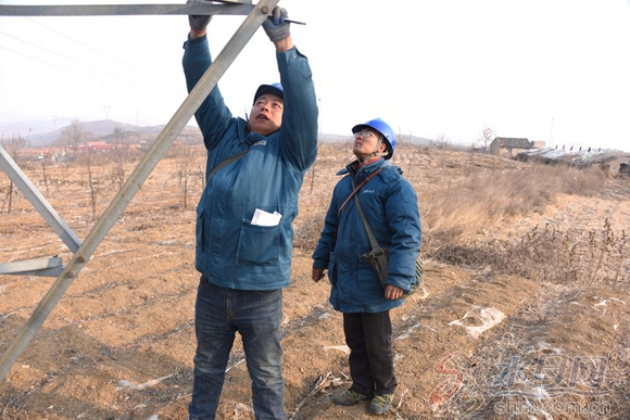 水母网1月17日讯(记者 张大明 通讯员 张峻)1月16日上午,记者跟随国网栖霞市供电公司输电运检班巡线队员对110千伏丰松Ⅰ线进行春节前特巡。