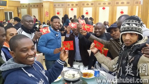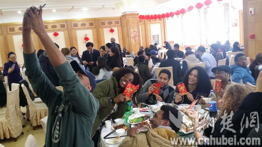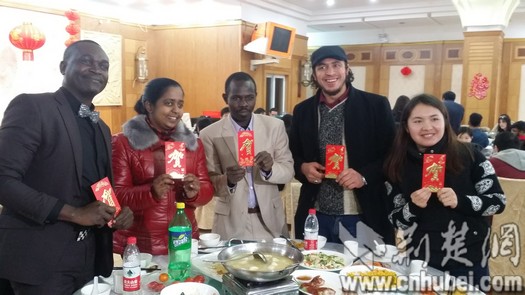 湖北日报(荆楚网)消息(记者韩晓玲 通讯员党波涛)“新年好!”24日中午,在华中师范大学桂香园,180余名留学生和校领导、老师们一起吃团年饭,品尝中国年的滋味儿。来自五湖四海的学生们,一见面就用汉语寒暄。