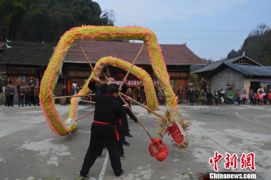 甘溪侗寨侗胞舞龙祈求新的一年幸福安康。 袁灿平 摄